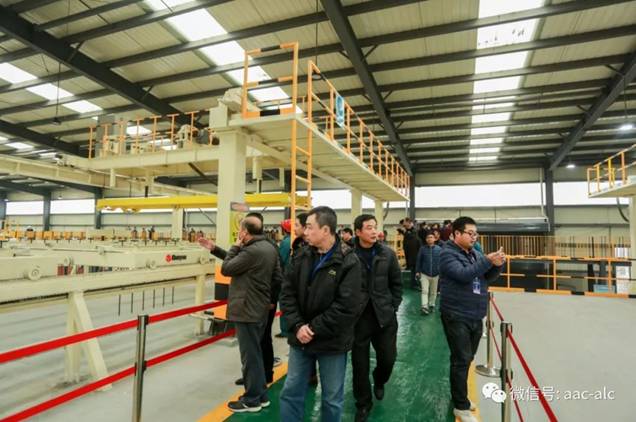 與會(huì)嘉賓參觀生產(chǎn)線——濰坊特鋼集團(tuán)有限公司年產(chǎn)30萬m³砌塊-板材項(xiàng)目,該生產(chǎn)線采用東岳機(jī)械全套加氣設(shè)備,獲得一致好評(píng)。