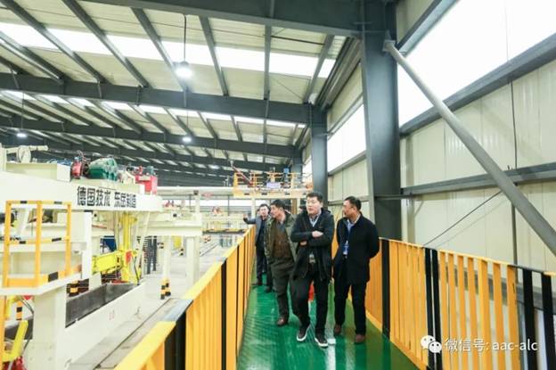 與會(huì)嘉賓參觀生產(chǎn)線——濰坊特鋼集團(tuán)有限公司年產(chǎn)30萬m³砌塊-板材項(xiàng)目,該生產(chǎn)線采用東岳機(jī)械全套加氣設(shè)備,獲得一致好評(píng)。